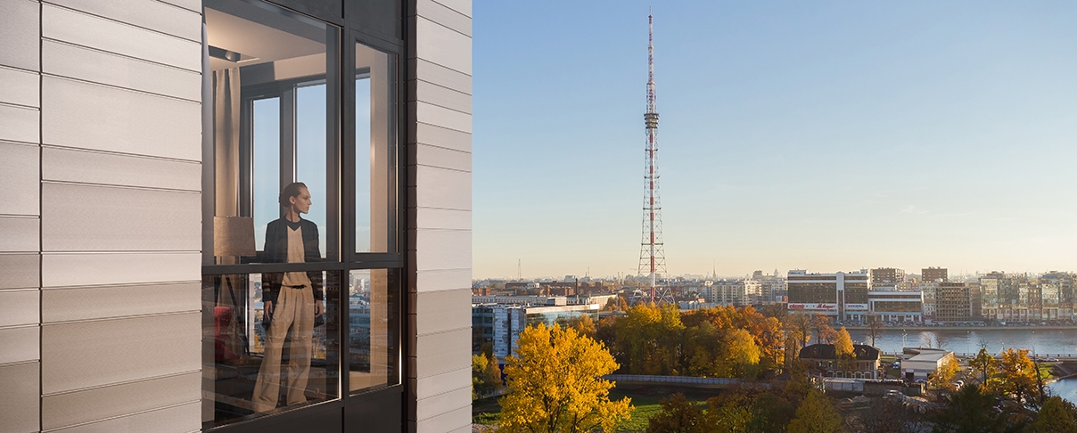 ЦДС «Черная Речка» расположен между станциями метро Черная речка и Лесная, до каждой из которых можно дойти за 15 минут. Виды из окон на набережную и Неву, малоэтажный комплекс в центре города, рядом парки и сады.
